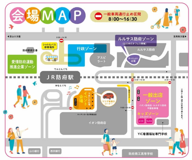 | 一般出店ゾーン | イオン防府・ルルサス防府平面駐車場 | 衣料品や雑貨など掘り出し物たくさん! キッズゾーンもあり 本部・救護こちら |