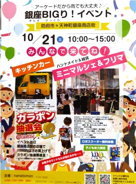 「愛情防府フリーマーケット」、同日開催の「銀座BIGり!イベント」をご紹介しました。