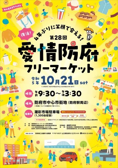 2023年10月21日(土)、防府市中心商店街にて「愛情防府フリーマーケット」が4年ぶりに開催されます!