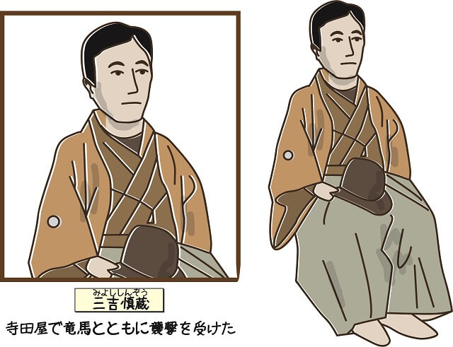 三吉慎蔵(みよししんぞう)は、薩長同盟の立役者である坂本龍馬(さかもとりょうま)の命を救った、長府藩(長州藩の支藩)の人物です。