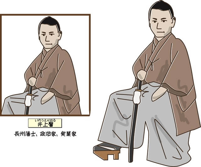 井上馨(いのうえかおる)は幕末、高杉晋作らとともに尊王攘夷運動で活躍。「長州ファイブ」の一員としてイギリスへの密航にも参加しました。