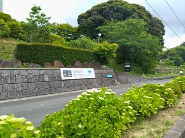 美術館の周りには、あじさいやサツキツツジといった花木が植えられ、緑がいっぱい。