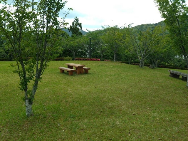 きれいに整備された広場には、ベンチや小高い丘が設置されています。
