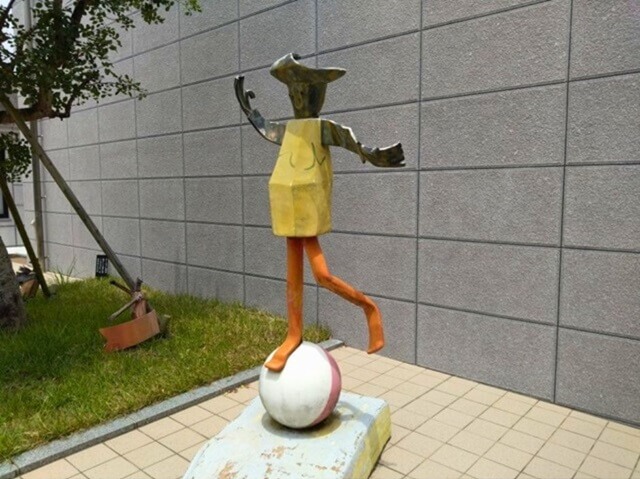 初めての香月泰男美術館に少々緊張していましたが、このオブジェを見て心がほぐれました。