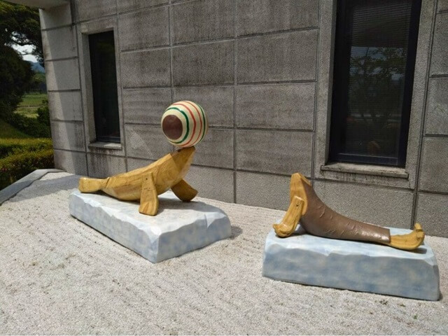 坂道を登って建物に着くと、かわいらしいアシカのオブジェが出迎えてくれます。