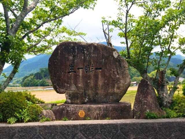 美術館の玄関正面には、香月泰男の名言「一瞬一生」を刻んだ石碑があります。