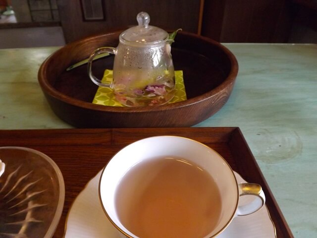 エディブルフラワーのお茶の色、上品で甘い香り、すっきりとした味わい。