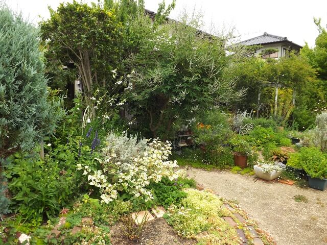 この庭は、れんげハウスをオープンする前から、店主の福田さんがコツコツと作り上げてきたもの。