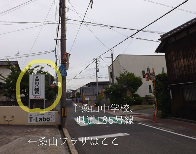 桑山プラザのなかでも、お店は桑山中学校に近い方の建物の中。目印は桑山八幡宮の看板です。