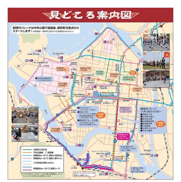 萩市内が秋のお祭り一色に染まるんだね^^見どころや駐車場を知りたいな