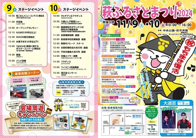 2024年11月9日(土)10日(日)の2日間、萩中央公園をメイン会場に、「萩ふるさとまつり」が開催されます。