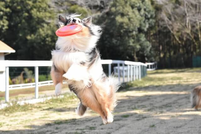 飼い主が投げたフライングディスクを愛犬がキャッチして得点を競う、アメリカ生まれのドッグスポーツよ