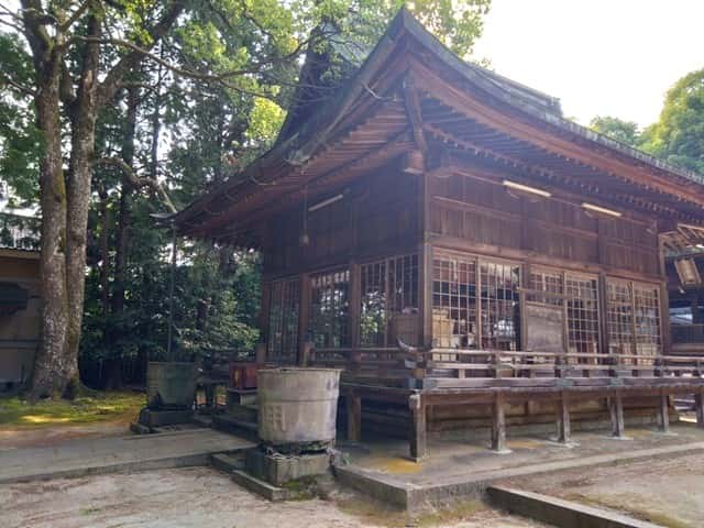拝殿前の両脇にあるコンクリートの用水溜は、1886年(明治19年)に寄進されたもの。