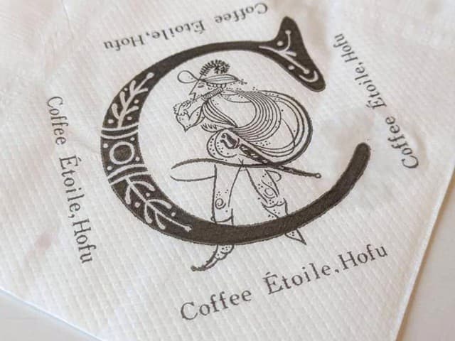 パフェの下に敷かれていた紙ナプキンには、「コーヒーエトワル防府」の文字が。