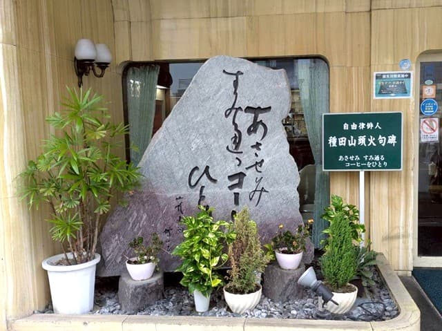 お店の前には、防府出身の放浪の自由律詩人、種田山頭火の句碑が。