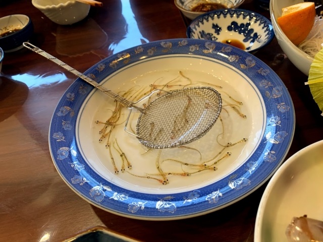 生きたままのしろ魚を酢醤油(すいち)につけて食べるので、ピチピチと動くのど越しを楽しめますよ。
